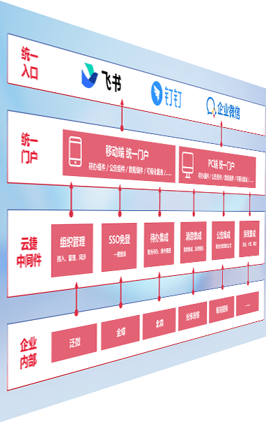 对协作平台提供支持服务,,,支持企业应用与协作平台对接,,,包含组织同步、、、消息集成、、待办集成等。。。支持目前主流的协作平台:钉钉、、、、企微和飞书。。。